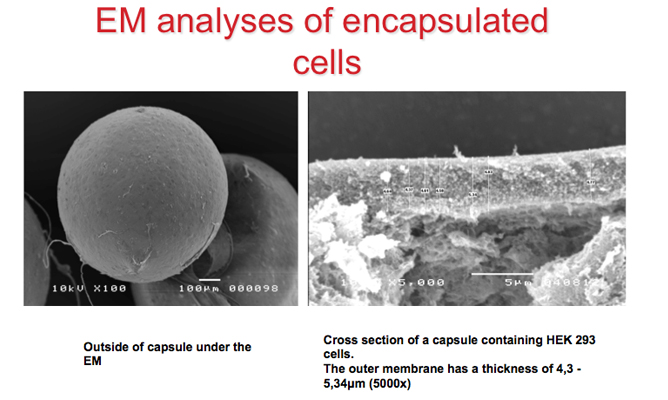 The capsules in which the cells are enclosed are made of cellulose, so depositing them into the body does not incite an inflammatory response. The encapsulated cells can remain in the body for at least two years before degrading.